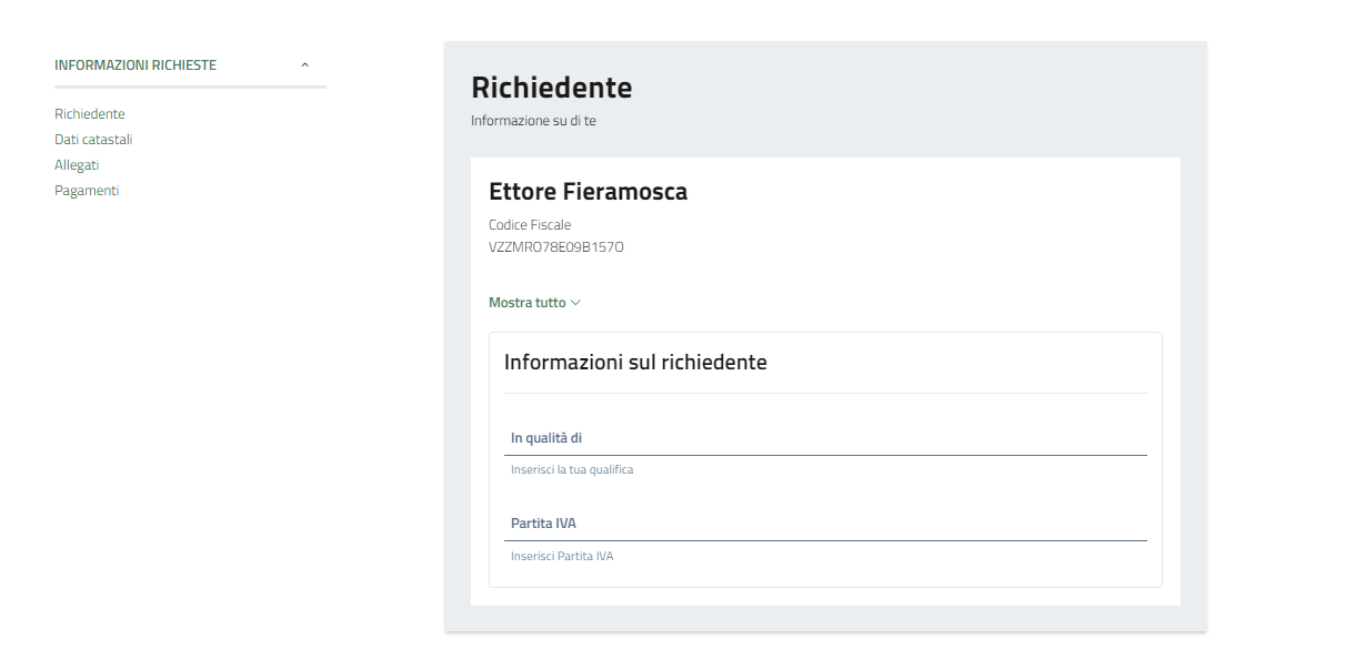 Indicare le informazioni relative alla propria qualifica e alla partita iva.