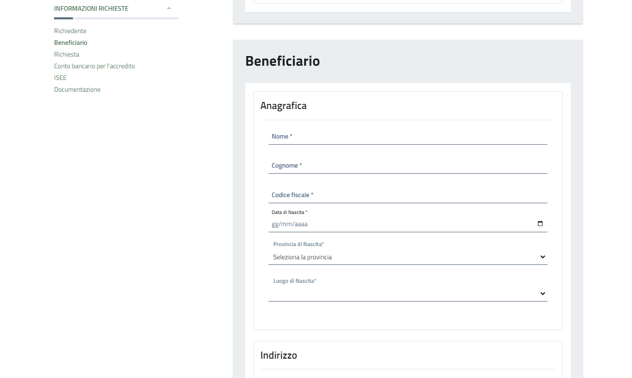Nel caso in cui si sia il diretto interessato proseguire con la compilazione.