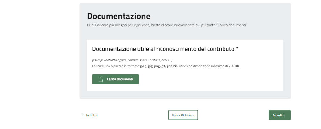 Caricare l'eventuale documentazione richiesta cliccando su "Carica Documenti"