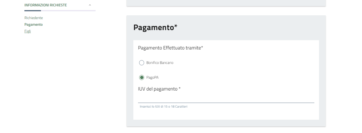 Nel caso in cui si sia pagato tramite PagoPa, indicare invece lo IUV, ovvero l'Identificativo Univoco di Versamento, creato automaticamente dal sistema PagoPa.