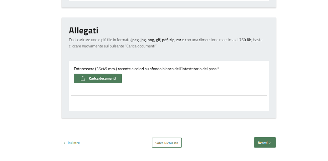 Allegare infine copia di una fototessera utile alla stampa del pass.