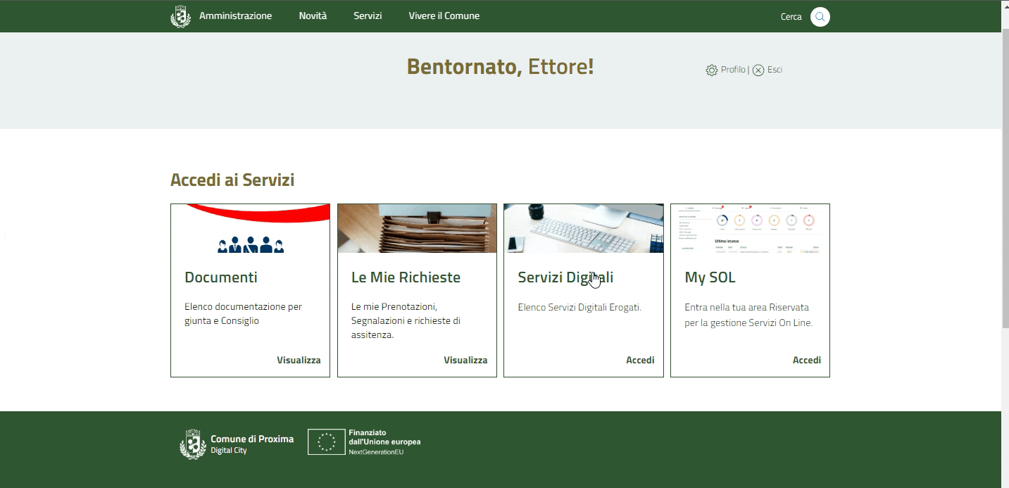 Per accedere dalla propria area personale ai servizi, cliccare su "Servizi Digitali".