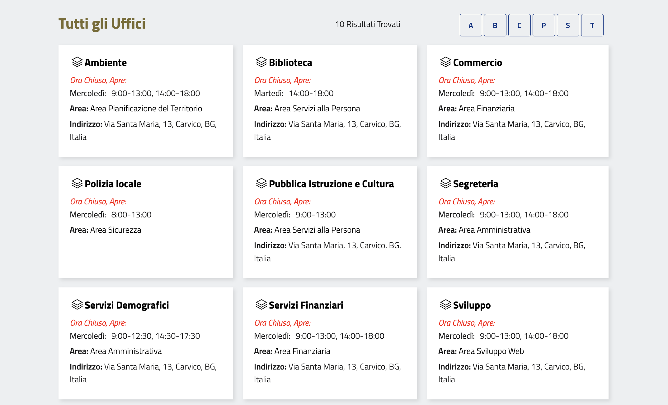 In questa sezione sono presenti tutti gli Uffici Comunali, ordinati in ordine alfabetico.
